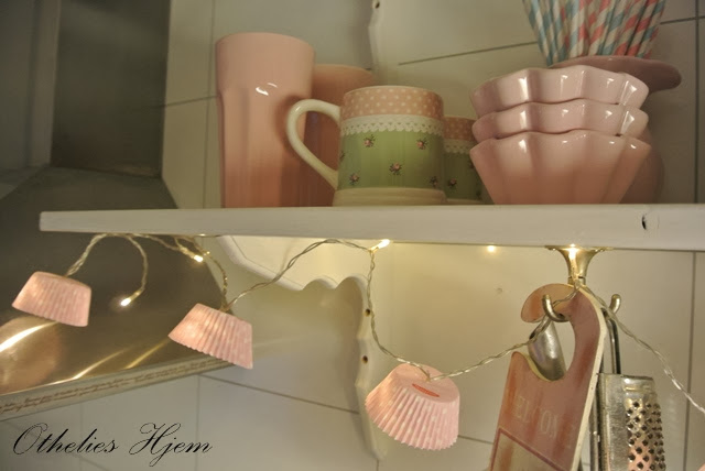 På den har jeg festet søte muffinsformer som fungerer som lampeskjermer;)